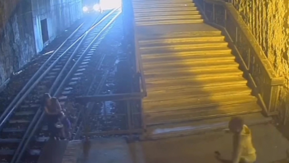Naime, na Instagram profilu "serbialive_beograd" objavljen je jeziv snimak na kojem se vidi žena koja, držeći dete za ruku, trči po pruzi tik pre nego što je naišao voz.