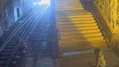 U trenutku dok žena i dete trče po pruzi, a voz ih sustiže, na klupi je sedeo jedan muškarac, koji je u trenutku odmah instinktivno skočio kada je ugledao ovaj jeziv prizor, kako bi im pomogao.