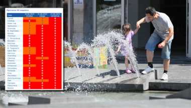 Indeks UV zračenja danas je u celoj Srbiji najčešće 8 i 9, odnosno u crvenoj boji ili vrlo visok, što je po jačini odmah ispod ekstremno visokog UV zračenja, označenog ljubičastom bojom.