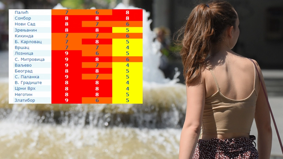 Kako se može videti na njihovoj najavi, vrlo visok nivo UV zračenja sutra će biti u Somboru, Zrenjaninu, Banatskim Karlovcima, Sremskoj Mitrovici, Veklikom Gradištu, Crnom vrhu, Negotinu, Kraljevu, Kopaoniku, Kruševcu, kao i u Ćupriji, Nišu, Leskovcu, Dimitrovgradu, Prištini i Vranju. Pogodnija situacija, sa visokim nivoom UV zračenja biće na Paliću, U Novom Sadu, Kikindi, Vršcu, Loznici, Valjevu, Zlatiboru, Sjenici i Požegi.
