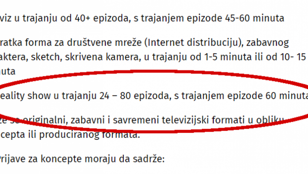 A toliko buke gde su prednjačili u osudama rijalitija oni sad radpusuju konkurs za Rijaliti šou. Nemam reči.