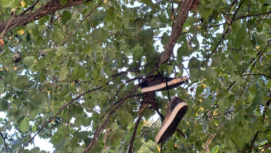 Uređenom stazom pored reke prolaze i stariji i mlađi, ali retko ko se zagleda u krošnju drveta koje se nalazi uz skejt park. Onaj ko ipak pogleda naviše nađe se u čudu jer na granama umesto vrabaca ugleda dvadesetak pari starih patika.
