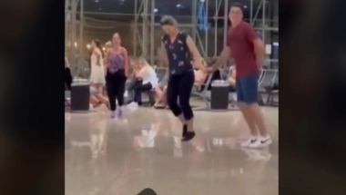Jedan muškarac započeo je "proslavu" na aerodromu, a ubrzo mu se pridružila i jedna dama, verovatno iz Srbije. Sudeći po snimcima, deluje da su akteri vrlo iskusni u igranju sprske tradicionalne igre.