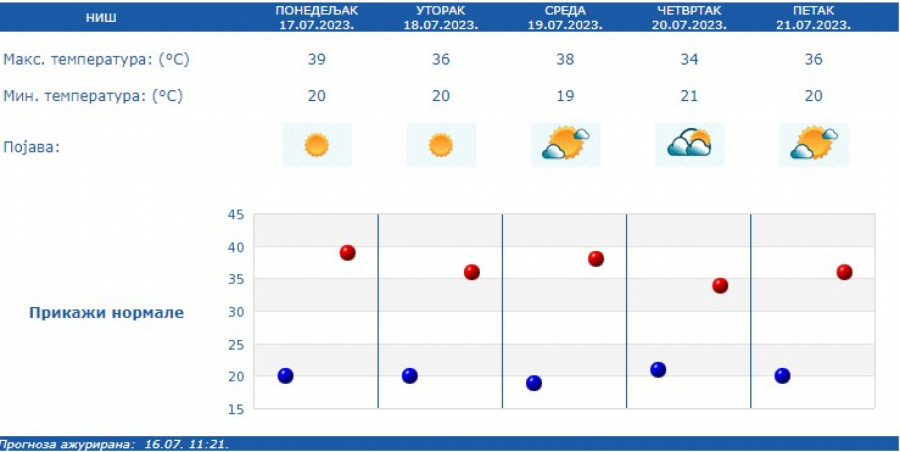 U Srbiji danas sunčano i veoma toplo. Najniža temperatura od 19 do 24, a najviša od 37 do 40 stepeni.