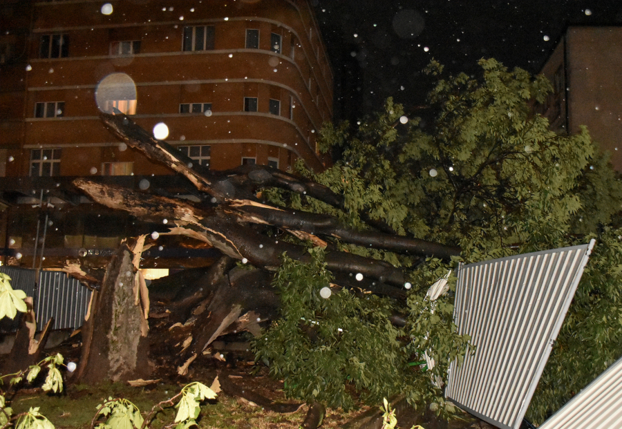 APOKALIPTIČNE SCENE U NOVOM SADU Superćelijska oluja čupala deo po deo grada, krš rasut po ulicama (FOTO)