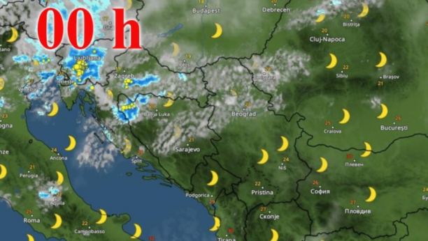 Grmljavinsko nevreme sa područja Slavonije i Bosne i Hercegovine koje se premešta u zapadno-jugozapadnoj struji zahvatiće Srem i Bačku, a zatim i područje srednjeg i severnog Banata premeštajući se preko Novog Sada i Kikinde dalje na severoistok.
