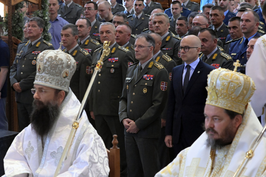 Potpredsednik Vlade i ministar odbrane Miloš Vučević i načelnik Generalštaba Vojske Srbije general Milan Mojsilović prisustvovali su danas, u Crkvi Svetog Marka u Beogradu, liturgiji koju je služio Njegova svetost patrijarh srpski Porfirije povodom krsne slave Sveti despot Stefan Visoki, koju Vojska Srbije obeležava prvi put.