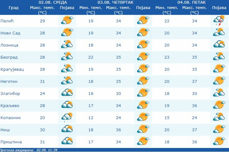 U Srbiji će danas biti sunčano i osetno toplije, saopštio je Republički hidro-meteorološki zavod i istovremeno upozorio na veoma toplo vreme sa maksimalnim temperaturama do 38 stepeni.