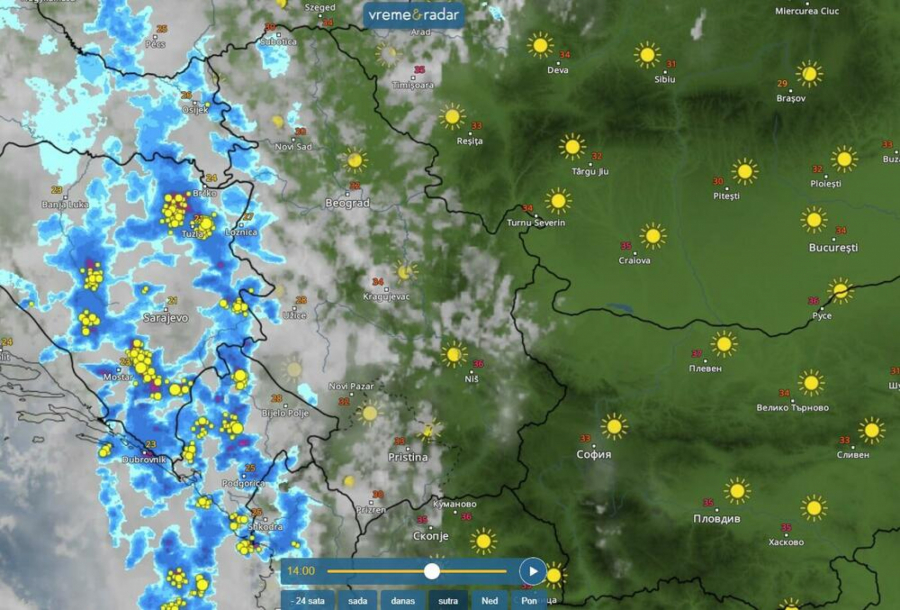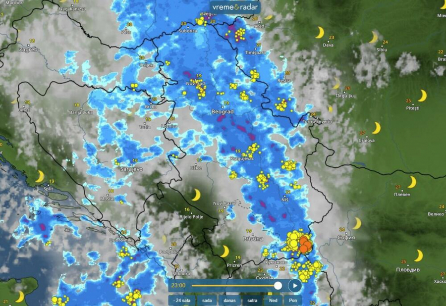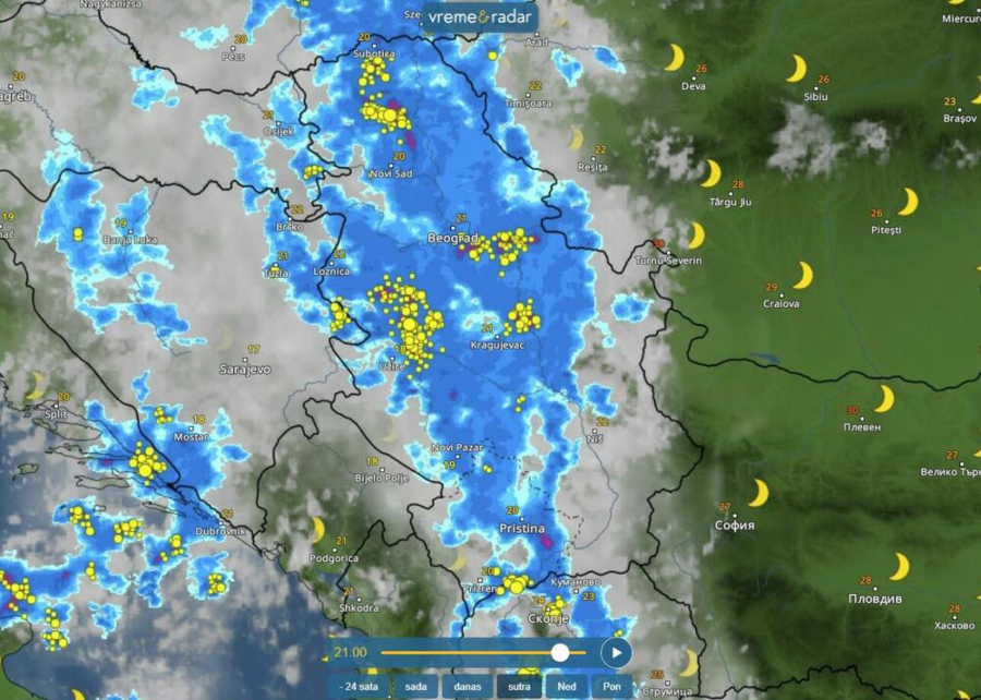 Da se nevreme bliži Srbiji pokazuje i meteo radar, na kom se može videti i kako će se ono kretati iz sata u sat: