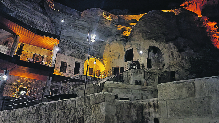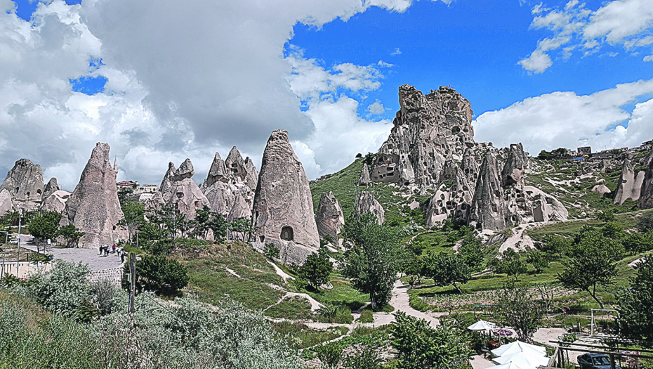 I smeštaj je u ovom delu Anadolije posebna avantura jer se veliki broj hotela bukvalno ugnezdio u pećinama. Prespavati u pećini, iako sa svim blagodetima modernih vremena, vraća putnika u neka daleka vremena, takoreći do praistorije, izazivajući osećanja od teskobe do ushićenosti... Ne uzbuđujte se ni ako se ujutru probudite i vidite mokre mrlje na svodu i zidovima sobe/pećine, jer će vam na recepciji reći: „To je normalno - pećina je to“.
