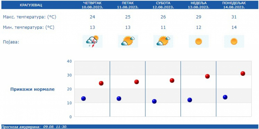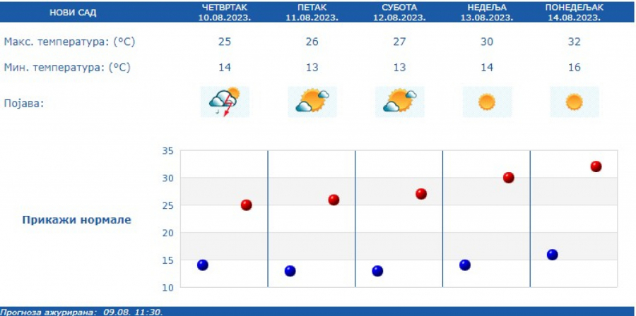 U petak i subotu jutra će biti sveža, a dnevne temperature će i dalje biti ispod proseka, a od nedelje sve toplije, pa se sledeće sedmice očekuje temperatura preko 30 °C, zaključuje se u saopštenju.