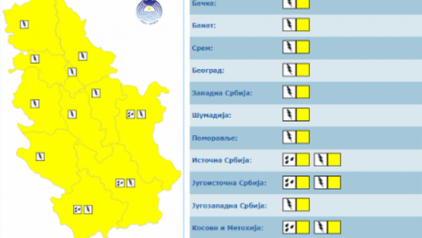 Upaljen žuti meteoalarm za celu Srbiju