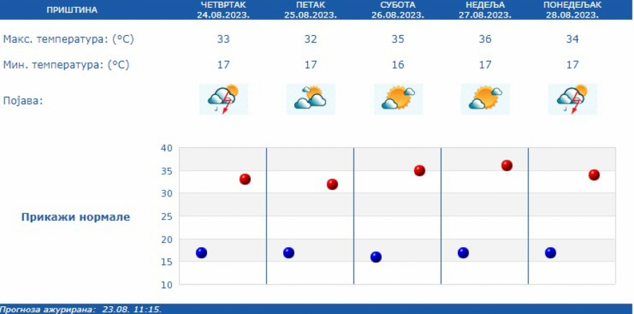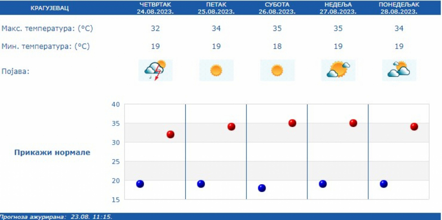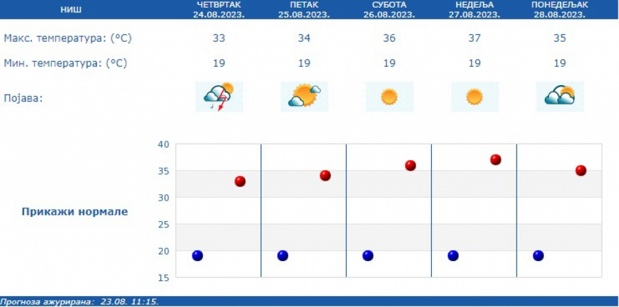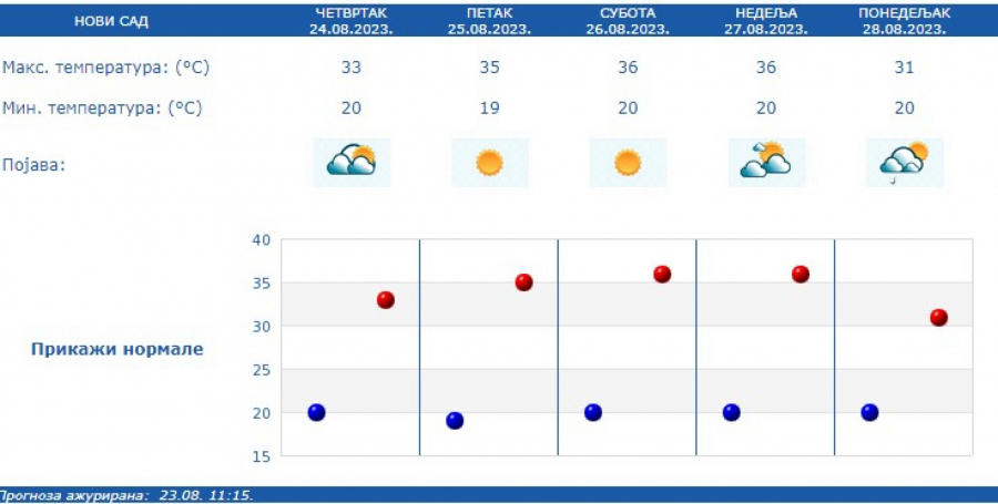 Duvaće slab i umeren severni i severozapadni vetar, a temperature će se kretati od 16 do 35 stepeni.