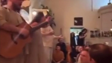 Na snimku koji je osvanuo na tviteru vidi se da je stan u kome se održavaju "kvartirniki" dupke pun, kao i da gosti sede čak i po policama i štokovima iznad vrata, dok ih muzičari zabavljaju.