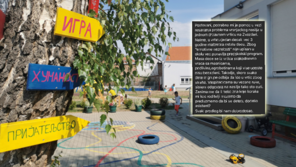 - Poštovani, potrebna mi je pomoć u vezi rešavanja problema vršnjačkog nasilja u jednom državnom vrtiću na Zvezdari. Naime, u vrtiću jedan dečak već tri godine matretira ostalu decu. Zbog "emotivne nezrelosti" nije upisan u školu već ponavlja predškolski program. Masa dece iz vrtića se svakodnevno vraća sa masnicama, podlivima, ogrebotinama koji više uopšte nisu bezazleni - požalila se ova majka na Instagram stranici "Serbialive Beograd".