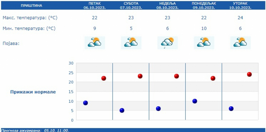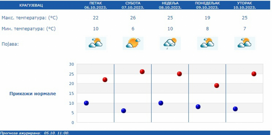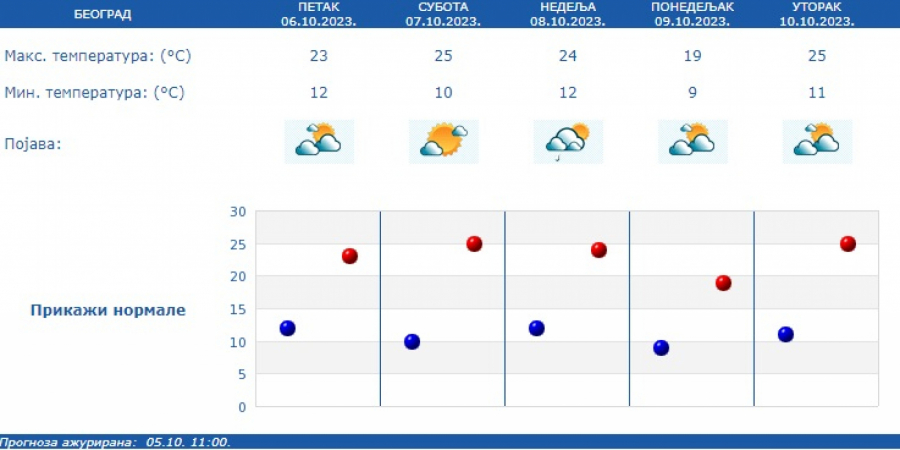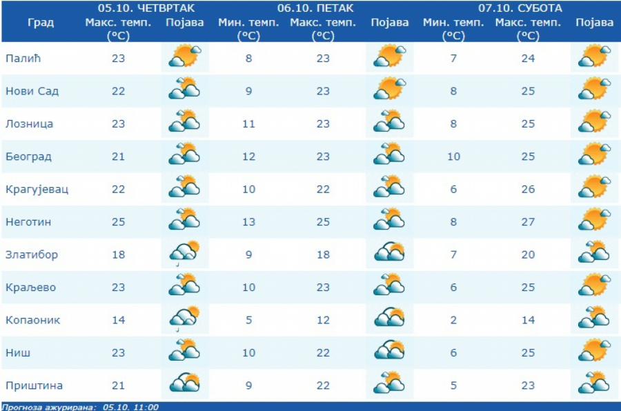Izgledi vremena u Srbiji u narednih sedam dana, do 13. oktobra: Jutra hladna, po kotlinama i dolinama reka jugozapadne i južne Srbije i kratkotrajna magla.