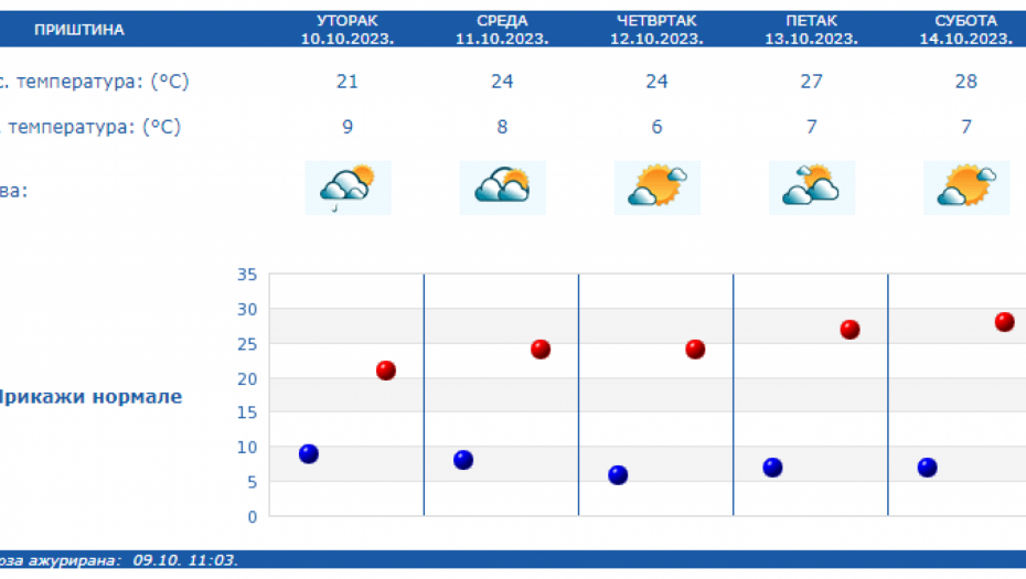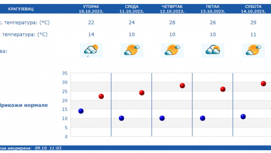 Nova radna nedelja nas uvodi u toplije vreme, pa se već krajem nedelje očekuju teperature i do 29 stepeni.Međutim, od naredne nedelje očekujmo kišu, lokalne pljuskove sa grmljavinom i pad temperature.