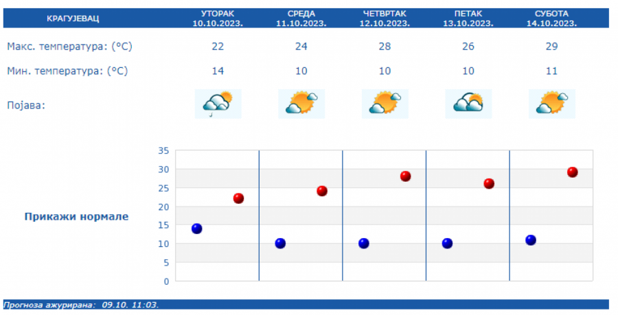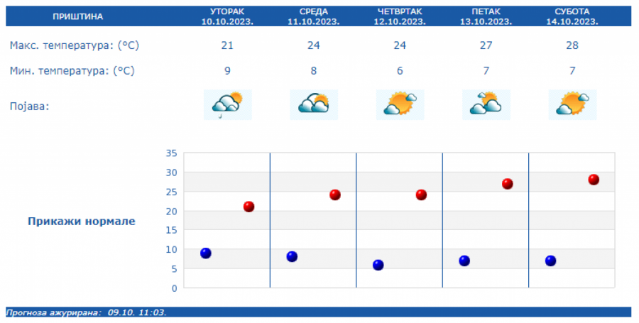 U Srbiji će danas, prema prognozi Republičkog hidrometeorološkog zavoda (RHMZ) biti promenljivo oblačno sa lokalnom pojavom kratkotrajne kiše.