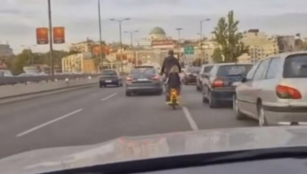 Video je snimljen kod Autokomande i na njemu se jasno vidi kako muškarac vozi bickl i dete u sedištu i kreće se na putu koji ima tri trake.