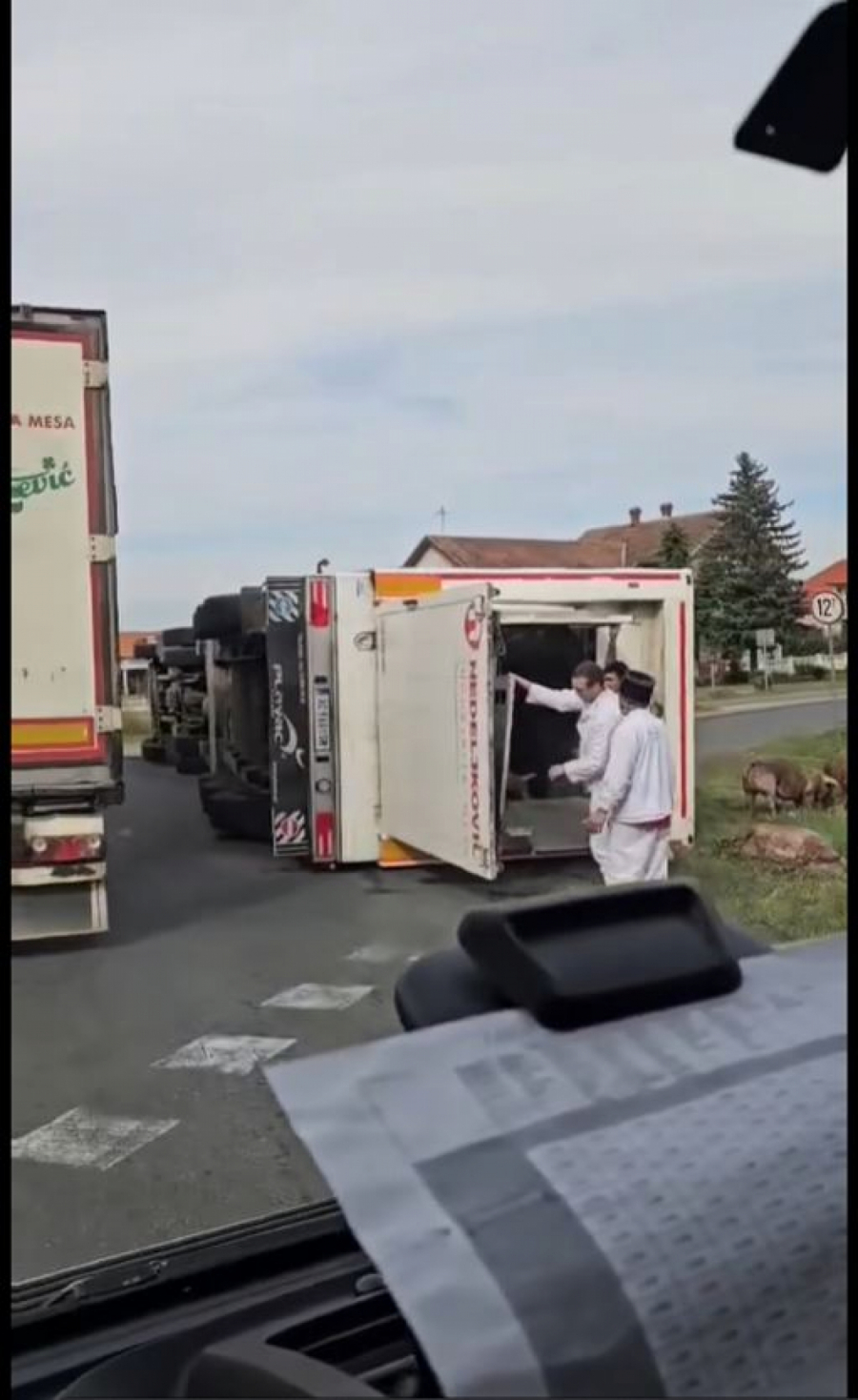 Naime, kako se može videti na pomenutom videu, na kružnom toku dogodila se saobraćajna nezgoda, a kamera suvozača iz automobila koji je nailazio zabeležila je, moglo bi se reći uobičajenu scenu nakon nezgode: prevrnut kamion i ljude oko njega.