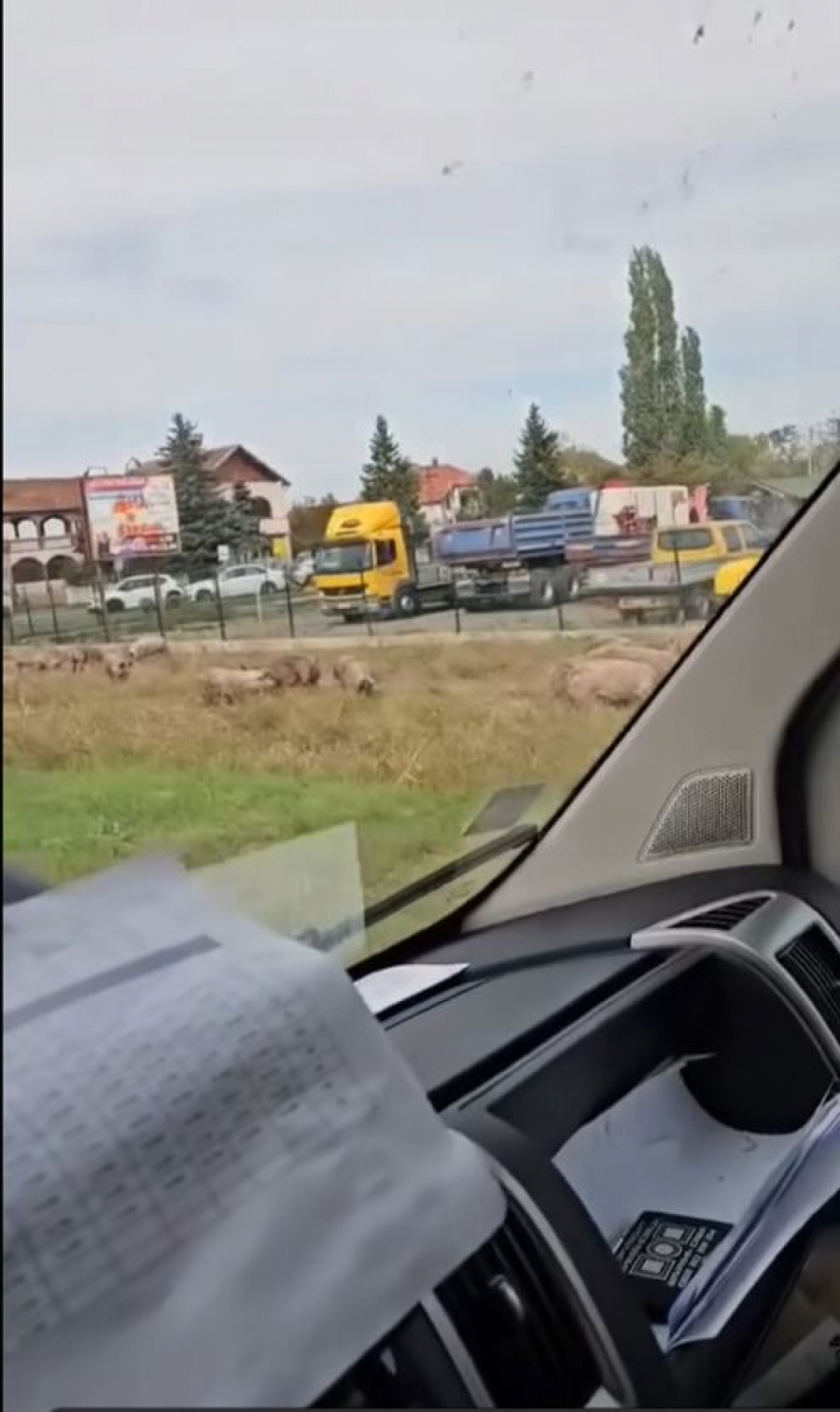 Ipak, nešto na snimku odudaralo je od svega, a to su bili "putnici" u kamionu. Ni manje ni više, po travnatoj površini razbežale su se svinje, koje su do tada prevožene u prevrnutom vozilu.