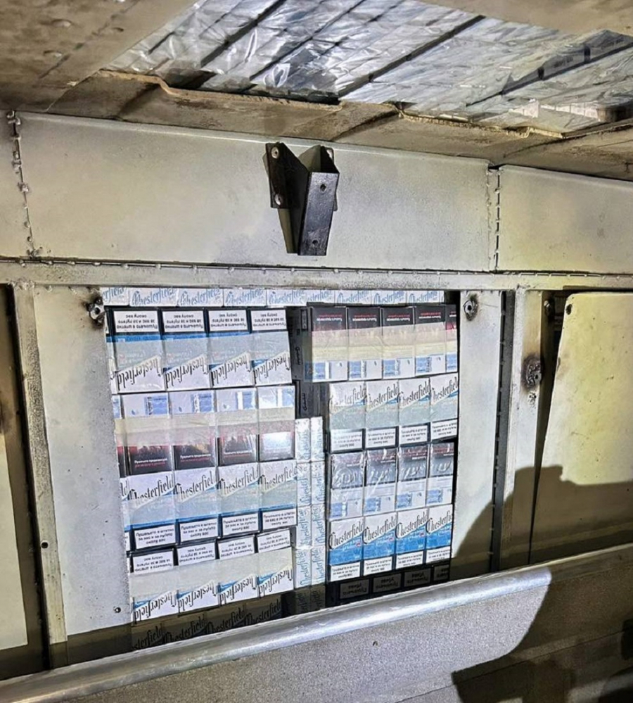 Tada su u šupljinama krova i zadnjoj stranici kabine, iza vozačkog i suvozačkog sedišta, otkrivene zbijeno napakovane paklice cigareta.