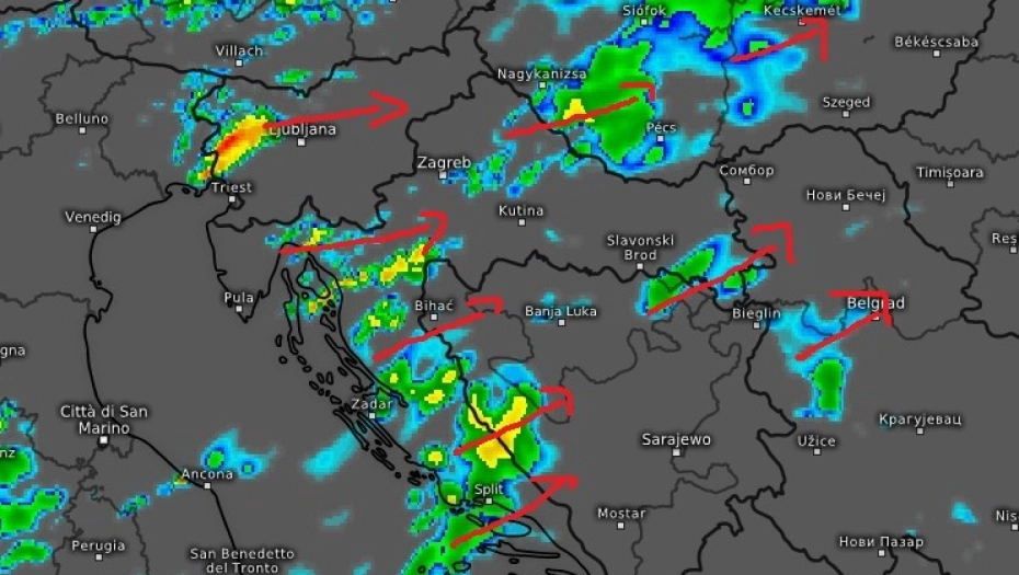 - U utorak krajem dana na zapadu i jugozapadu regiona sledi povećanje oblačnosti koje će usloviti pojavu kiše i lokalnih pljuskova koji će se u toku noći ka sredi prošriti nad najveći deo Hrvatske, severni i srednji Jadran, najveći deo BiH, zapadne i severne predele Srbije, dok će južnije i istočnije uglavnom biti suvo. Južni vetar sa padavina u slabljenju i okretanju na zapadni i severozapadni smer. U sredu će oslabljenja padavinska zona zahvatiti i jugoistok regiona, dok će na severu i zapadu tokom dana padavine prestati. Vetar zapadni umeren, uveče u slabljenju. Dnevni maksimum od oko +16 na severu do oko +25 ponegde nad jugu i istoku regiona. U četvrtak promenljivo oblačno, ponegde uz kišu i pljusak i relativno toplo uz slab južni i jugozapadni vetar. Maksimumi od +16 do +22 stepena Celzijusa.
