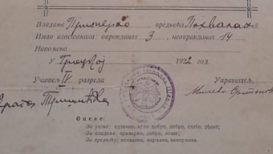 - Svedočanstvo suprugvog dede iz 1922 godine. Staro 100 godina. Kad vratimo ove predmete u škole, biće nam bolje - napisala je ona uz fotografiju svedočanstva.