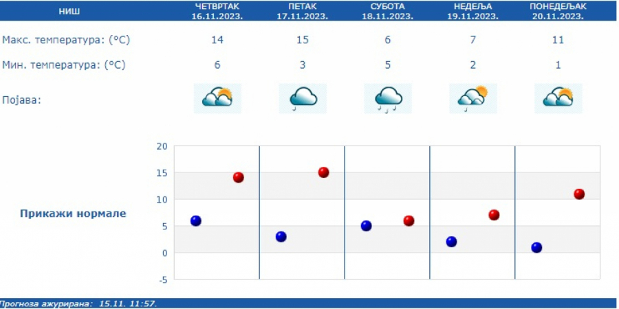 Oblačno, hladno i vetrovito, mestimično sa kišom, u brdsko-planinskim predelima sa slabim snegom koji se ponegde očekuje i u nižim predelima južne Srbije.