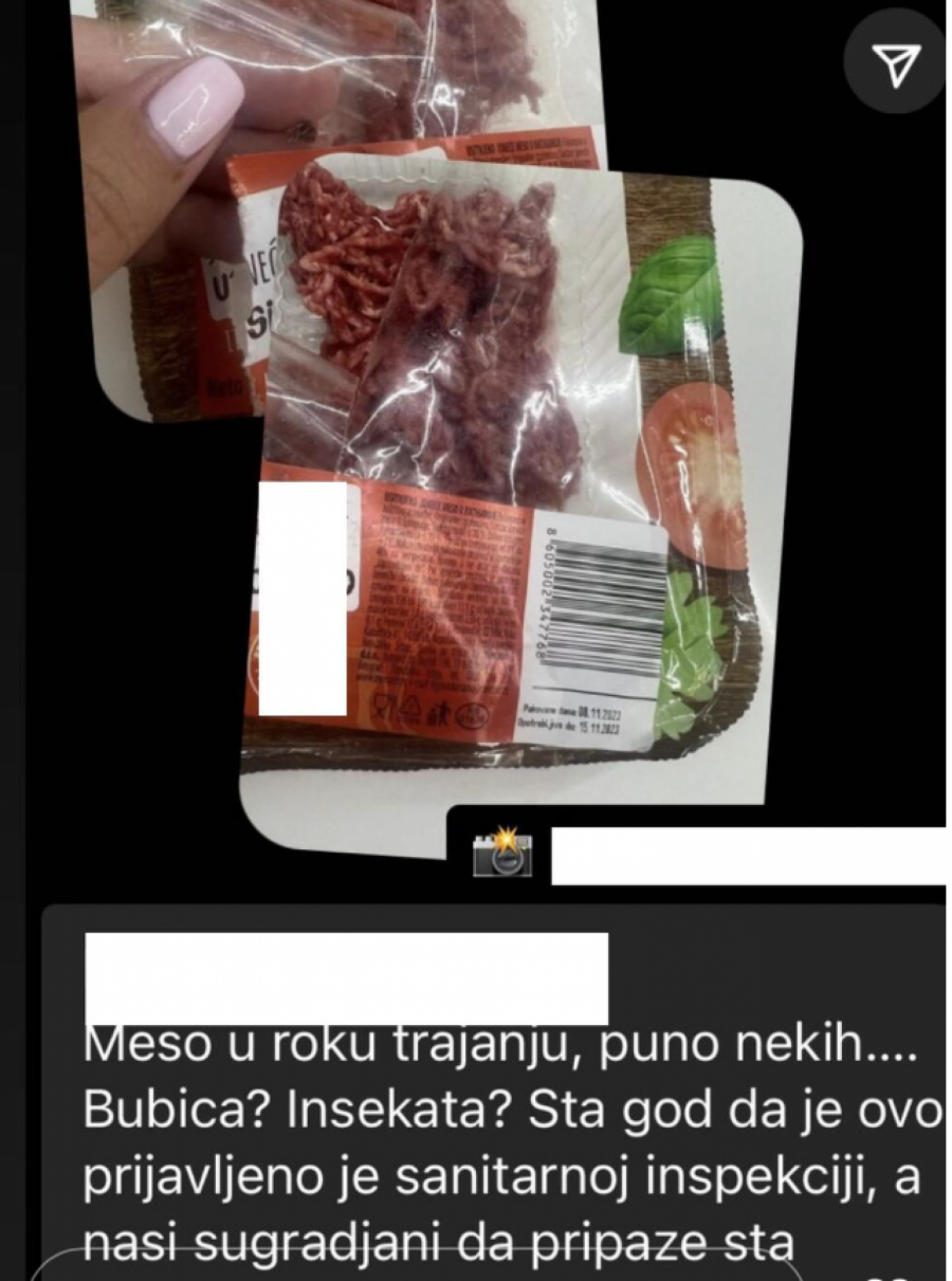 - Meso u roku trajanja, puno nekih bubica, insekata? Šta god da je ovo je prijavljeno sanitarnoj inspekciji, a naši sugrađani da pripaze šta kupuju - navela je ona u svojoj poruci.