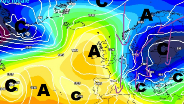 - Danas malo do umereno oblačno i suvo, relativno hladno uz maksimume od +7 do +14 stepeni Celzijusa. U ponedeljak će se preko nas na kratko ispred novog hladnog fronta pokrenuti južno strujanje tako da će posle hladnog i mestimično maglovitog jutra tokom dana biti promenljivo oblačno i uglavnom suvo, mada bi rano pre podne na severu regiona lokalno moglo biti malo kiše. Duvaće slab do umeren, južni vetar. Dnevni maksimum do +9 do +16 stepeni Celzijusa. U utorak sledi širenje uticaja novog sekundrnog ciklona čiji će se centar nalaziti nad jugom Italije, tako da će se naš region nalaziti u njegovom hladnom sektoru. Već u utorak rano ujutro na zapadu, severu i severozapadu kiša, koja bi se u utorak tokom dana priširila i nad ostali deo regiona. Tokom dana hladnije uz okretanje vetra na severni i severoistočni smer, duž Jadrana širenje jake i olujne bure. Dnevni maksimum od +6 do +12 stepeni Celzijusa, a snežna granica na oko 800mnv.