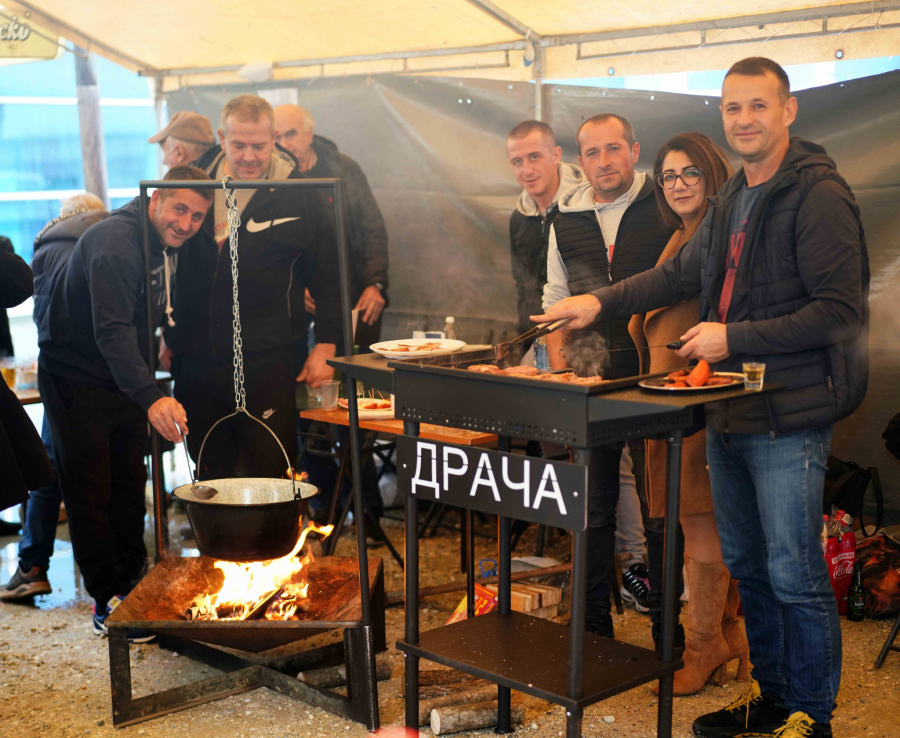 Počelo je zdravicom. Gužva je vladala ispred ambicioznog tima iz Drače, sela za koje kažu da se nalazi u strogom centru Srbije. Dvojica Aleksandara, obojica Ćurčići, Žarko Madžarević, Marko Ćurčić i Slobodan Perović bili su pravi domaćini, pa su uz sladunjavo piće služili i domaće iće.