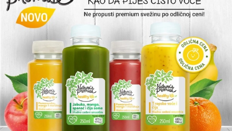 Najnoviji dodatak asortimanu „Nature's Promise“ su hladno ceđeni sokovi koji čuvaju originalnu svežinu i hranljivost voća. Proizvedeni kroz proces sporog ceđenja na temperaturi od svega 4°C, zadržavaju autentičan ukus i boju voća, bez primene pasterizacije. Ovaj metod omogućava očuvanje svih vitamina, minerala i enzima, obezbeđujući kupcima potpuno prirodne sokove na dohvat ruke.