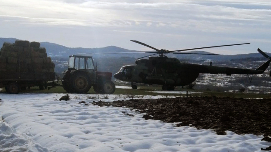 U pružanje pomoći su uključeni i helikopteri Ratnog vazduhoplovstva i PVO, kojima je danas dopremljen prvi kontingent hrane za stoku na Suvoj planini, što je zbog visokih snežnih nanosa trenutno moguće samo vazdušnim putem.