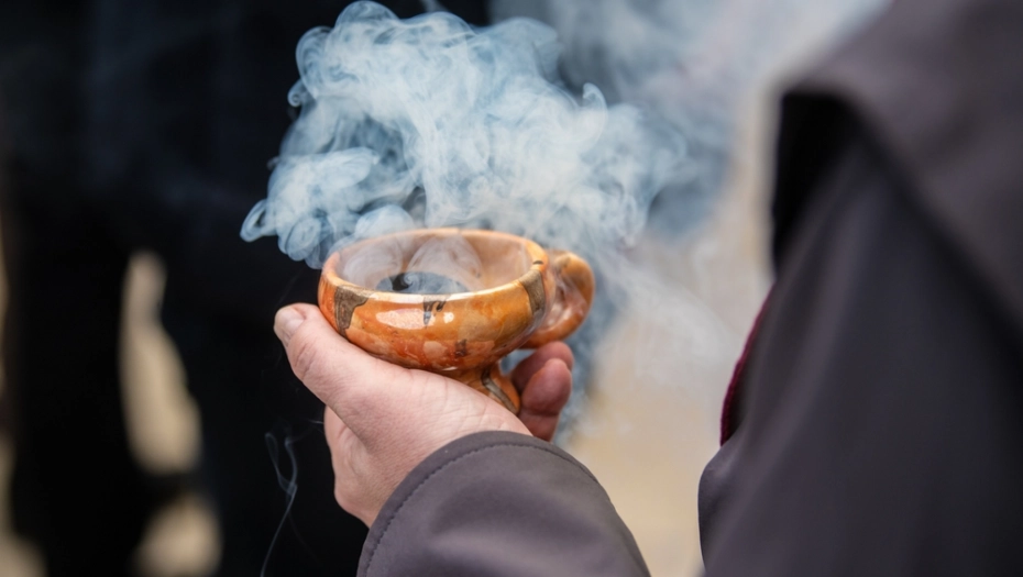 U kadionicu treba da stavite malo briketa, a preko njega nekoliko zrna tamjana. Upalite šibicom ili upaljačem, a kada počne da gori, pomolite se.