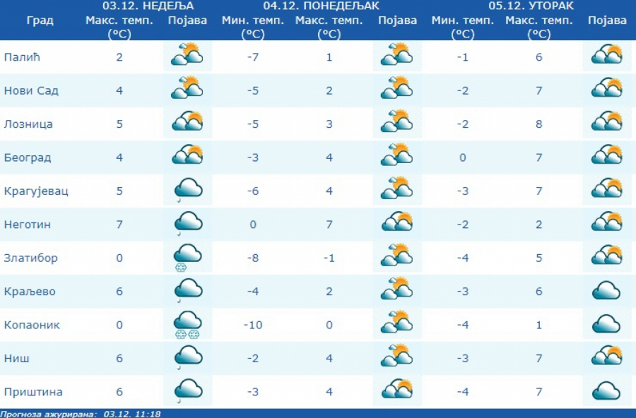 U Beogradu jutro hladno sa slabim do umerenim mrazem i vedro. Veći deo dana pretežno sunčano. Uveče postepeno umereno naoblačenje, ali će se zadržati suvo vreme.