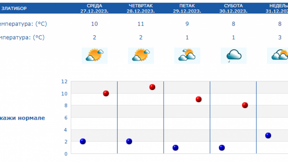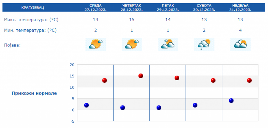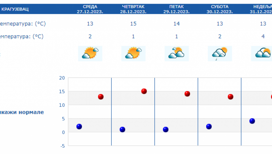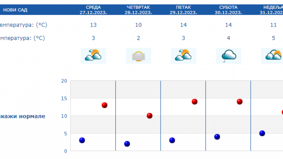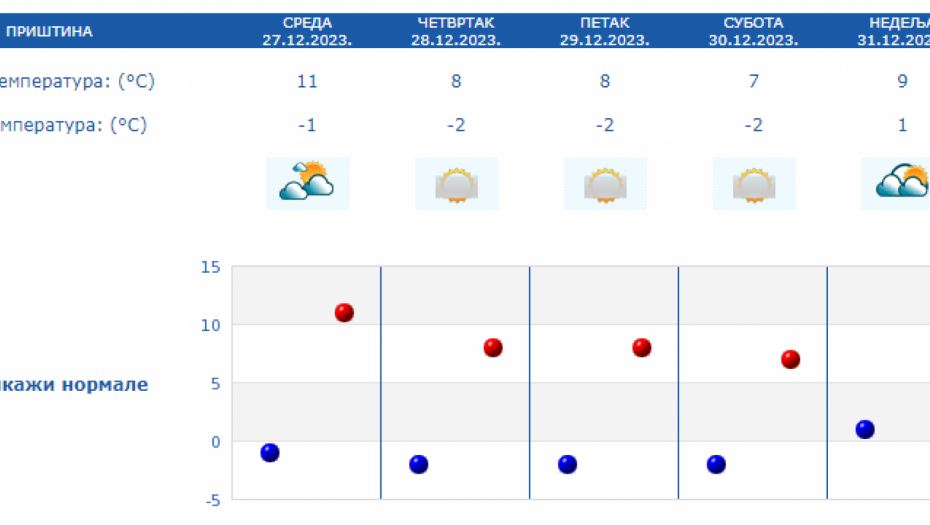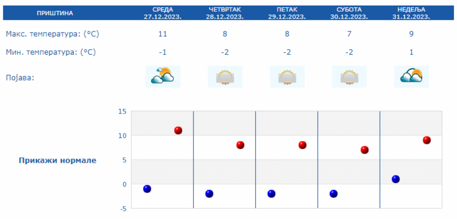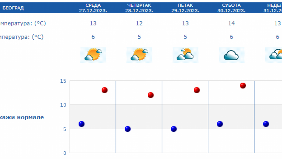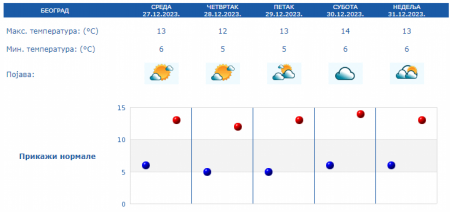 Najniža temperatura u glavnom gradu iznosiće od 2 do 6, najviša oko 13 stepeni Celzijusa.
