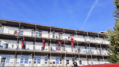 Predivna novogodišnja slika dolazi iz Kragujevca! Deda Mrazevi su se spustili na dečju kliniku, donoseći radost i osmehe mališanima koji tamo borave.