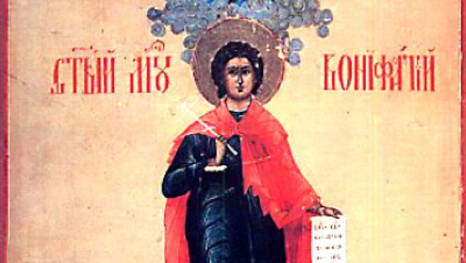Srpska pravoslavna crkva danas obeležava svetog Bonifatija, koji je 290. godine dao svoj život da bi njegove mošti od zla čuvale kuću bogate i razvratne žene Alglaide u Rimu, čiji je bio sluga i sa kojom je imao nečiste i nezakonite veze.