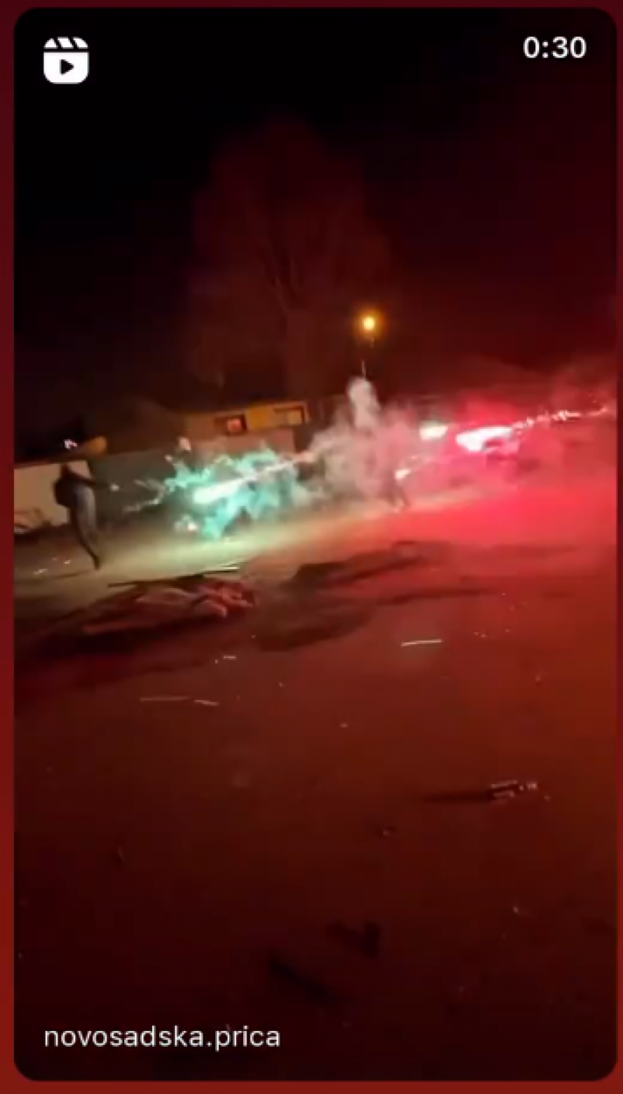 Na snimku objavljenom na stranici "Novosadska priča" vidi se kako mladići jure na sve strane, u rukama drže vatromete i usmeravaju ih jedni u druge! Kriju lice rukama, okreću se, ali se vidi i da varnice dopiru do njih.