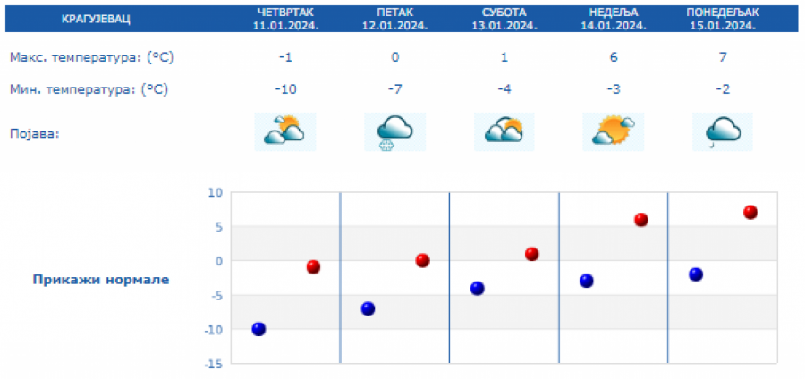 Prema prognozi za narednih sedam dana, do kraja sedmice u jutarnjim satima očekuje se umeren do jak mraz.