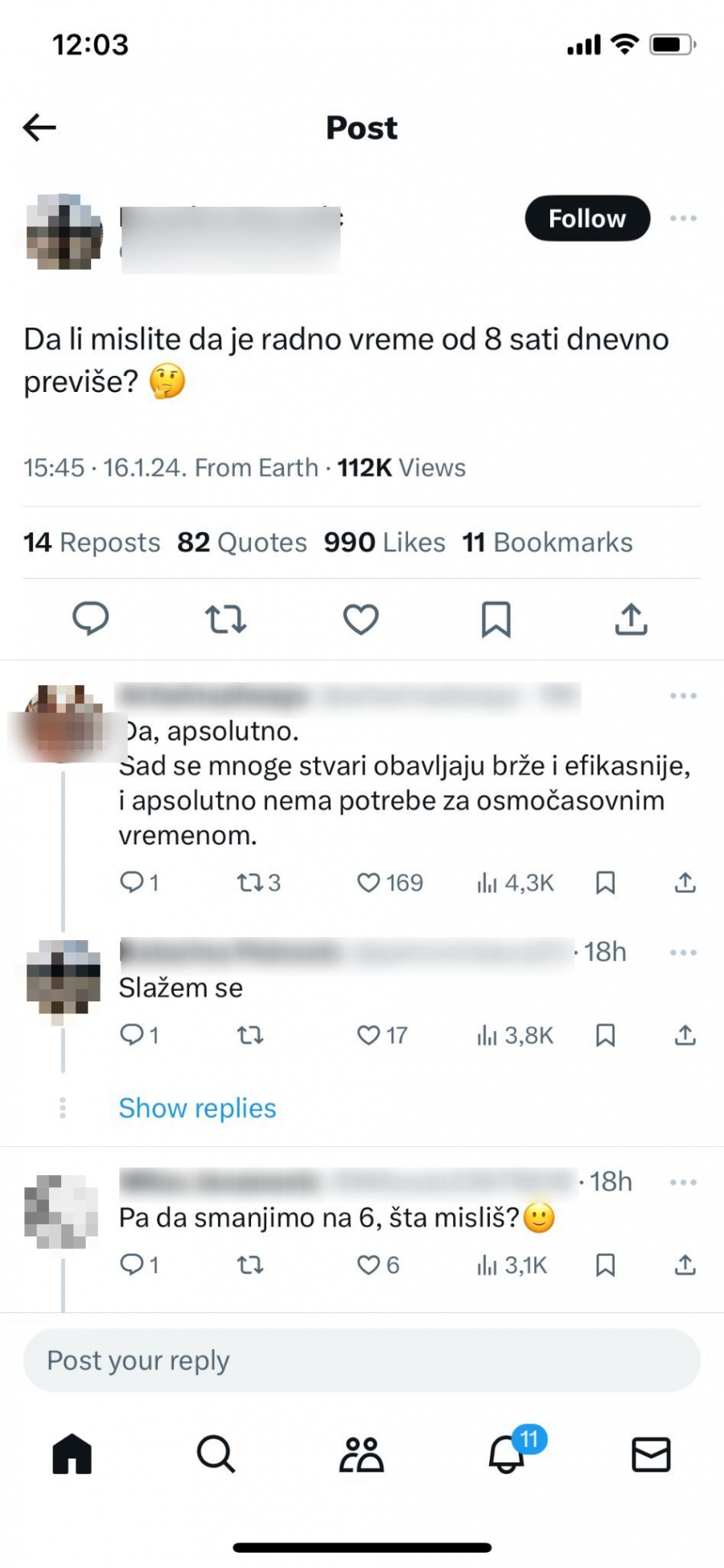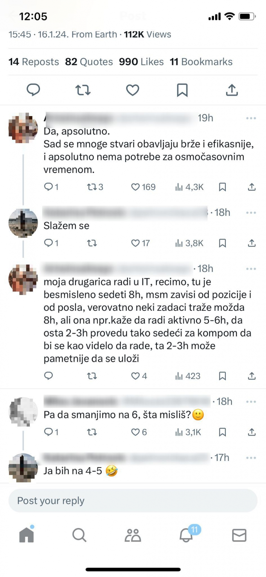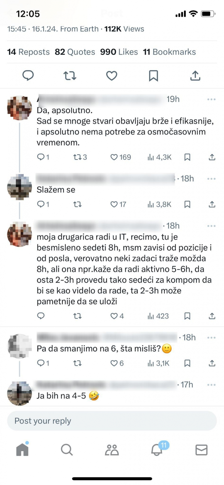 Čini se da se sa tim slažu i korisnici društvene mreže Iks koji su se uključili u polemiku o tome koliko radni dan treba da traje.
