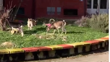 Na snimku se vidi da koze ne mare za prolaznike i komšije, već su se brzo odomaćile. U pozadini se čak čuju vrisci i povici dece, a ove životinje za njih nisu marile.