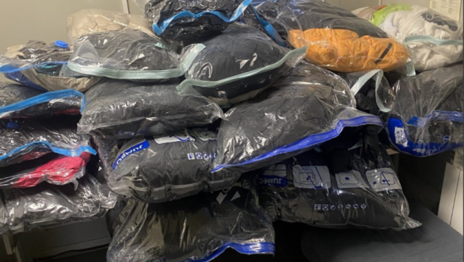 U drugom slučaju, zabeleženom istog dana na ulaznoj strani graničnog prelaza Horgoš, zaplenjena je firmirana odeća i obuća, otkrivena prilikom detaljne kontrole autobusa koji je prevozio putnike iz Nemačke ka Albaniji. Kese sa muškim jaknama, džemperima i patikama, sa obeležjima robnih marki "Boss", "Hermes" i "Karl Lagerfeld", bile su sakrivene ispod zadnjeg reda sedišta u autobusu. Cene na etiketama svakog pojedinačnog artikla, ukazuju na autentičnost pomenutih robnih marki, pa je na osnovu njih vrednost robe procenjena na oko 350.000 dinara.
