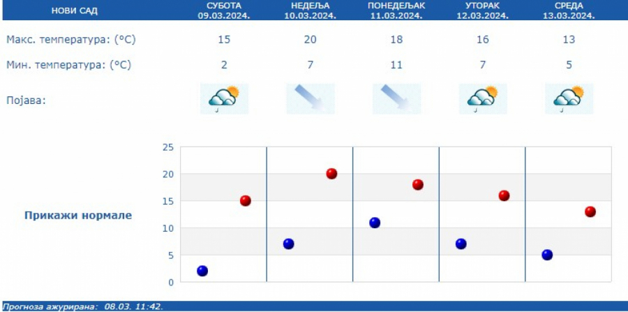 Najviša dnevna temperatura će biti oko 15 stepeni.