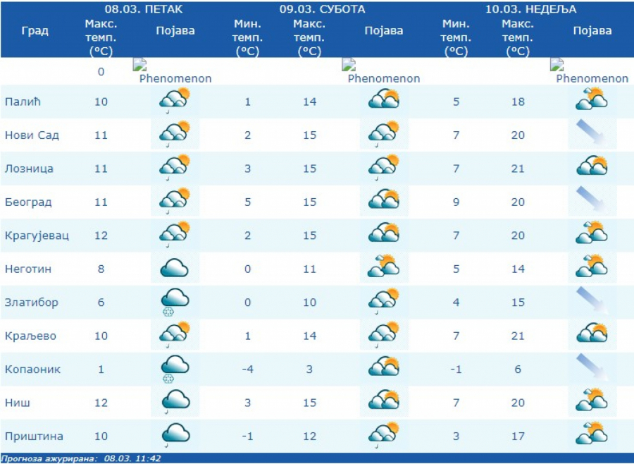 U Beogradu će tokom dana biti promenljivo oblačno i toplije, uveče i tokom noći se očekuje prolazno naoblačenje sa kratkotrajnom kišom ili lokalnim pljuskovima.