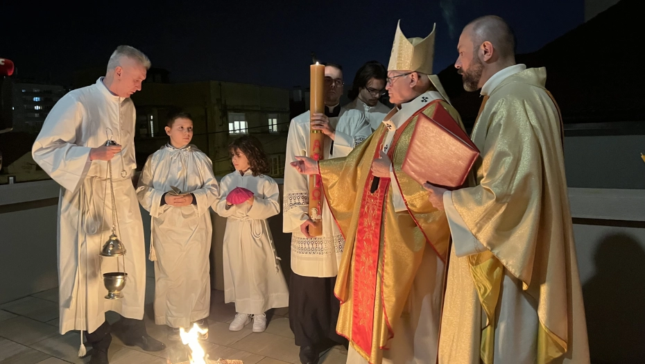 Misa je počela blagoslovom uskršenjeg ognja ispred katedrale, a potom i paljenjem sveće koja se unosi u hram kao simbol Histove svetlosti.