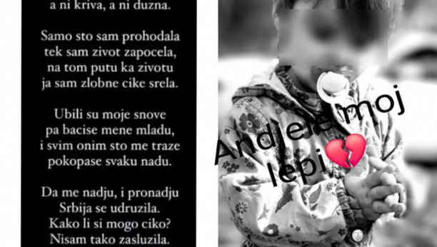 "Zašto čiko? Svi zbog mene suze liju Srbija je cela tužna, skupu cenu platila sam, a ni krivi ni dužna. Samo što sam prohodala tek sam život započela, na tom putu ka životu ja sam zlobne čike srela. Ubili su moje snove pa baciše mene mladu, i svim ovim što me traže pokopaše svaku nadu. Da me nađu i pronađu Srbija se udružila. Kako li si mogao čiko? Nisam tako zaslužila. Šta su vam bile krive te ručice male? Pa ste poput zveri bezdušno ih zatrpale", piše u potresnoj objavi koju prati crno bela fotografija male Danke, iste one fotografije koja se našla na žutoj Interpol poternici.