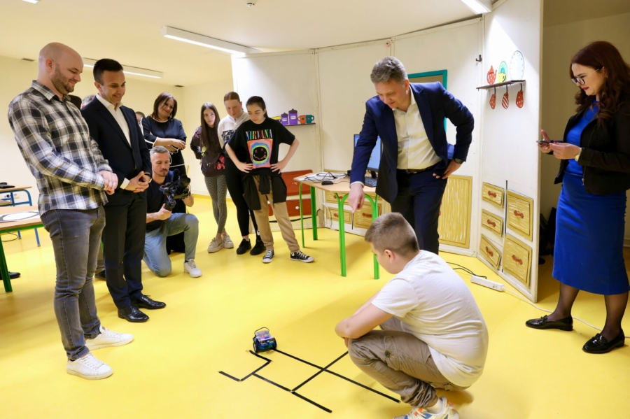 Jovanović i predsednik opštine Mionica, prethodno su posetili Centar za obrazovanje i razvoj u Mionici, u okviru kojeg im je učenik OŠ „Milan Rakić“ Ognjen Popović predstavio zajedničko idejno rešenje tima u kategorijama programiranje drona i programiranje mBota na smotri „Znanjem za budućnost“ kojim su se plasirali na republičko takmičenje. Pored učenika Ognjena, tim čine učenici Veljko Dikić, Nikola Jovanović i Matea Čitaković.