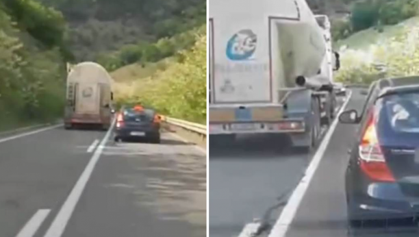 "Vozač šlepera je, blago rečeno, izveo veoma nepromišljeno preticanje na jednom od najopasnijih delova Ibarske magistrale kod tvrđave Maglič", navodi se u opisu videa.